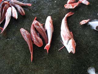 今日底引き船の水揚げを見学しました。20種類くらいのお魚が水上げされていました。