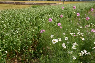 そこで,市民のみなさん,市外から訪れるみなさんに常陸秋そばにもっと愛着を持っていただこうと,市役所東側国道349号線沿いのフラワーロードに常陸秋そばの種をまきました。当ホームページにおいて,そばの成長していく姿を随時報告していきたいと思います。