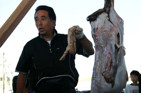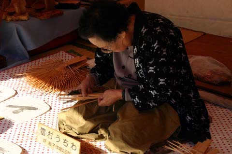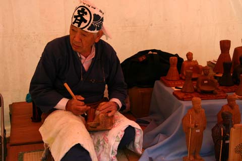 ¡Ö¿å¸ÍÇÀ¿Í·Á¡×¤òÀ©ºîÃæ¡¢¸Ç¤¤ºàÎÁ¤òÌÛ¡¹¤Èºï¤Ã¤Æ¤¤¤Þ¤¹¡£Ëµ¤é¤Ç¤Ï±ü¤µ¤ó¤¬¤ªµÒ¤µ¤ó¤ËÀâÌÀ¤·¤Æ¤¤¤Þ¤·¤¿¡£