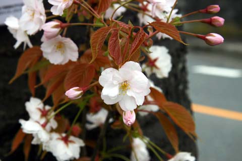 下の写真は「長州緋桜」、山桜にも濃い色の品種があることを知りました。