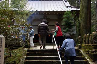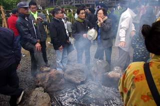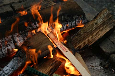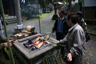 餅拾いの喧噪が静まると解散! なごりおしい人は健康を願って護摩壇の白煙を手でかざします。
