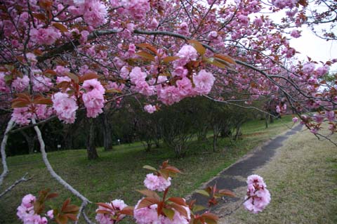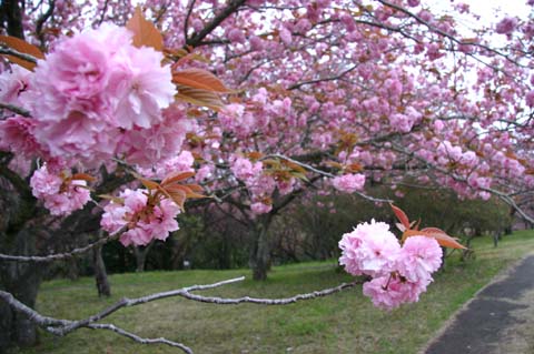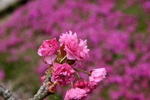 八重桜まつり 山は桃色