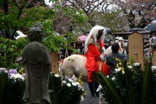 最初に境内に登場したのは真っ赤なマダラ鬼神、馬に乗っての登場です。