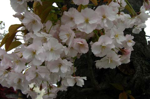 普賢象(フゲンゾウ)サトザクラ系 淡紅色 普賢菩薩の乗っている象のことで、葉化した雌しべがこの象の花に似ている。