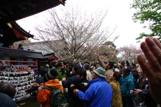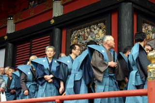 雨が降り気温が低く待っていても体が震える、ホッカイロで暖をとりながら待つこと5時間 午前11時になると楼門からマダラ鬼神を先頭に行列が石段を登りはじめます。