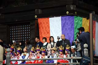多宝塔の回廊では稚児たちが鬼さんと記念撮影、よい思い出になることでしょう。