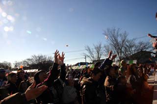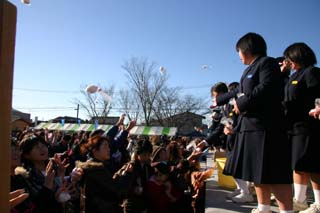 「餅まき」はイベントやお祭りでよく行われる行事ですが、女子ブラスバンド部員による餅まき をはじめてみました。
