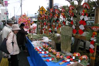 暮れ市は縁起物やお正月用品を買い求める人のために毎年開催されているもので、かつては大勢の人出があり、焼きそばやたこ焼きの露店も出てたいそうな賑わいを見せていた聞いています。