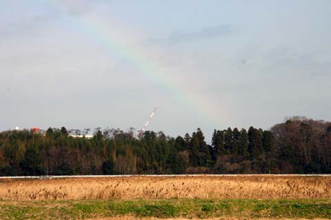 霜の降りた朝、田んぼに立つと、富士山が大きく見え、筑波山雨引山が近くに見え、日光塩原那須の山々も見えます。