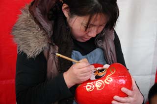 毎年馴染みのお客さんが買いに来て、だるまの目を入れます。