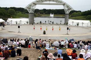 国営ひたち海浜公園「水のステージ」を舞台として踊るフラダンスはハワイ・ワイキキの浜辺が連想されて、踊るダンサーはもちろん、観客もフラダンスを充分に楽しむことができました。