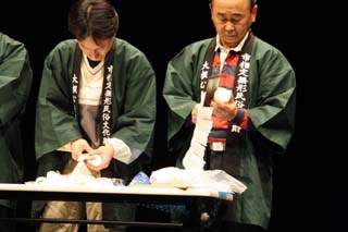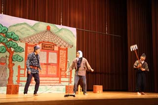 たっつぁい劇団により「たっつぁい噺」が上演され、観客から笑い声や感心する声しきり。