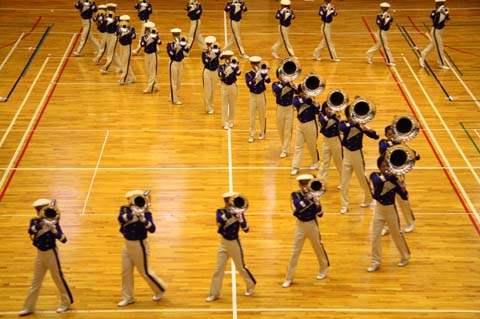 前進する列と前向きのまま後退する列が、綾を織るように交互に交差する技などパレードの曲芸ではないかと思われるような行進も、日本一の練習により実現しているものと思われます。