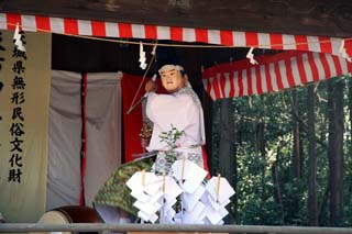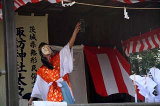 茨城県西地域では、江戸時代中期から昭和30年代にかけて、多くの神社で神楽が演じられてきた歴史があり、現在でも地域の人たちの楽しみとして「十二座神楽」が継承されています。