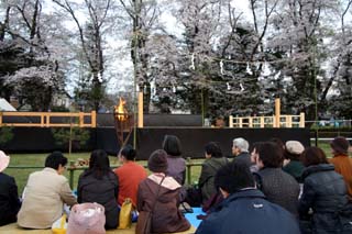 ふっとちらせ ば比良の暮雪か、嵐山には落花の吹雪とござ〜い。おたちあい。