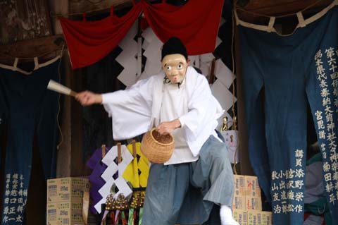 稲荷(男神)の舞:白狐の面をつけ鍬で耕す所作を行なう。