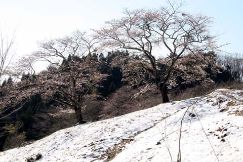 外大野のしだれ桜を見たあと「沓掛峠のヤマザクラ」へ(案内板あり)。