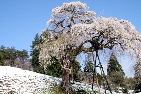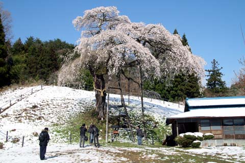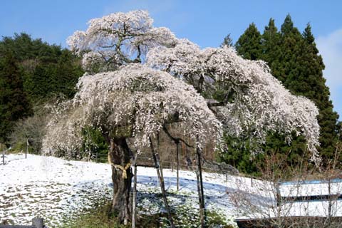 常陸太田市「泉福寺のしだれ桜の雪景色」もご覧ください。