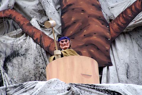 わが国に人形の細工師あまたありと言えども、京都にては 大阪表にては竹田結之助、近江の大乗は藤原のあそん、この両名をおいて上手名人はござりませぬけれども、手前のは近江のつむり細工で、もんどには8枚のコハゼをしかけ、背中には10と2枚の唐子歯車を仕組んでござる。