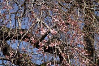 額田南郷の阿弥陀寺の枝垂れ桜が1分咲き
