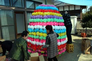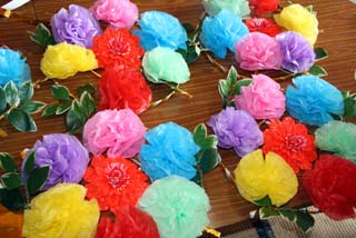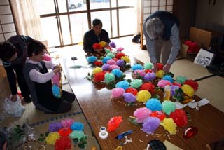 赤土町では、町民が手分けして花纏を手作りしています。