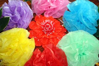 材料はお花紙というもので、幼稚園や小学校の行事に飾られているお花です。