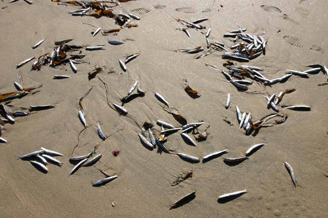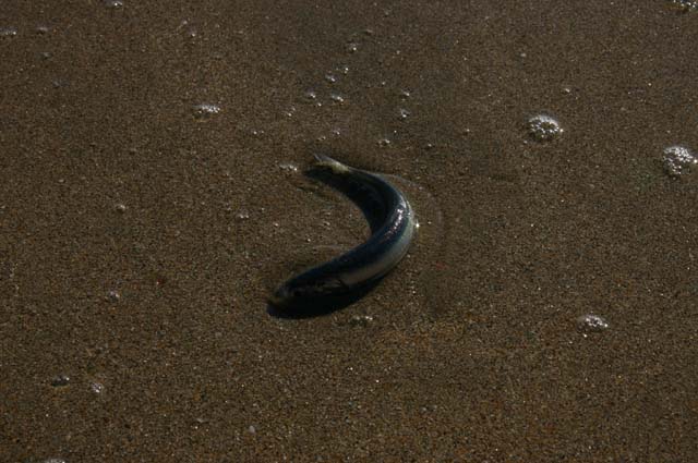 浜にはいわしが帯状に