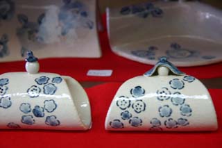 佐野安陶器店:陶器でデザインしたひな祭りが並んでいます。