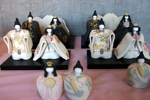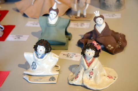 笠間市内のお店や工房でオリジナルの陶雛人形が展示即売されています。