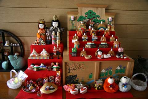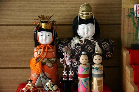 カギヤ楽器では貴重な一刀彫のお雛様、遠く京都から求めたお雛様でわざわざ自宅玄関まで案内してもらい、見せていただきました。