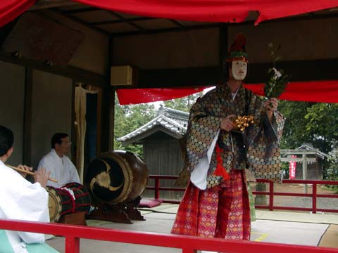 神楽は「出雲流神楽」で「十二座神楽」とも呼ばれ、神話の天地開闢(てんちかいびゃく)の舞をはじめとして日本神話に登場する神々の舞です。