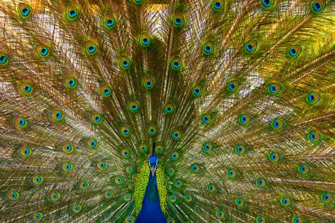 雌鳥が近づくとその羽を大きく広げ、シャラシャラッと揺さぶりながら踊ります。