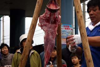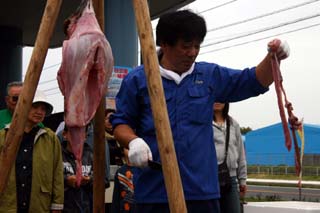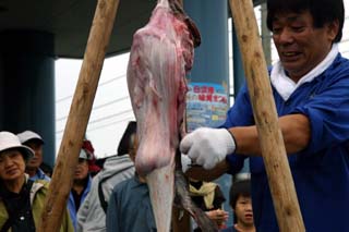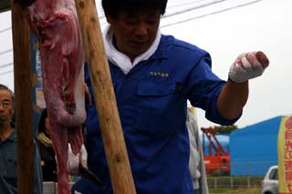 日立港秋の味覚まつり(1)あんこう吊し切り実演