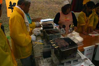左:山方牛の串焼き、旧山方町で久慈川の清流と緑豊かな山々に囲まれて、自然に恵まれたところで育てられている牛を山方牛といいます。
