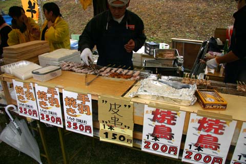 右:隣町大子町より奥久慈シャモの焼き鳥