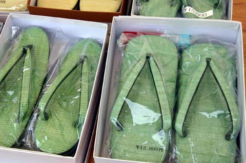 この繭を綿状にほぐして絹糸に紡ぎ、さらに機織りして、ハンカチやネクタイ、ぞうりなど手工芸品に仕上げて販売します。
