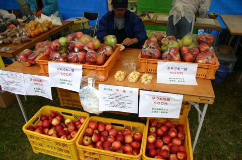 左:山間地の冷涼な気候にてきしたリンゴが栽培されています。詰め放題500円。
