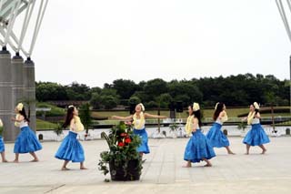 国営ひたち海浜公園「水のステージ」を舞台として踊るフラダンスはハワイ・ワイキキの浜辺が連想されて、踊るダンサーはもちろん、観客もフラダンスを充分に楽しむことができました。