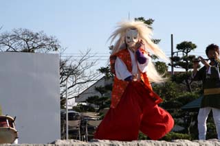 コンコンかわいい子狐ではなく、「ヒューロ、ヒューロ」と妖しい笛の音に、キツネの手を真似て妖怪きつねの形相で踊ります。