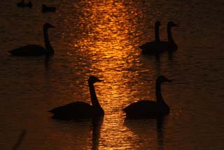 白鳥は通常東方向から飛来しますが、大きな建物がなく、また3月には朝日が昇る方向なので絶好の撮影ポイントであり、多くのカメラマンで賑わっています。