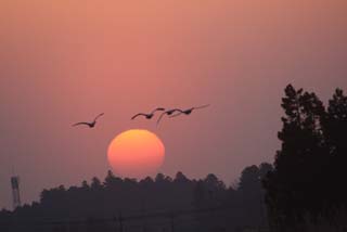 里山側も、黒い杉林をバックに白い白鳥が飛翔する情景がすばらしく、絶好の撮影ポイントです。