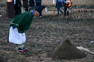 大太鼓奏楽、白御幣で御払い、祝詞奏上(・・かしこき稲荷の大神様かしこみかしこみ・・・・)、本殿で太鼓奏楽、金色御幣で御払い、願い人指名読み上げ(複数の宮司が一斉読み上げるので聞き取れない。)宮司玉串奉てん、願い人代表玉串奉てん、祭司あいさつ(新年・・・おめでとうございます。)