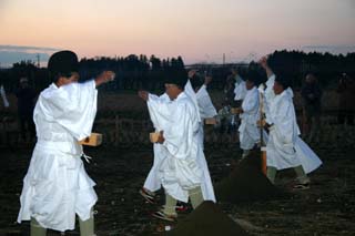 茨城県内で行われるお田植え祭の中では雅な舞や雅楽の演奏が繰り広げられるので特に見もので、田んぼに映る花笠に赤いタスキの早乙女の姿は実に美しいものです。