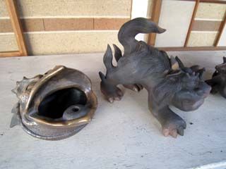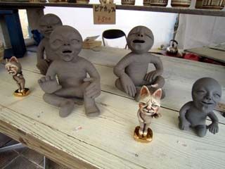陶房ごとにオリジナルな造形が並びます。