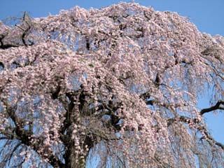 この桜の花は,淡紅色で細かく,気品の高い糸桜です。