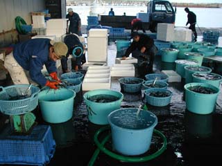 水揚げ、仕分け、セリ、箱詰めなどの作業で賑わいます。