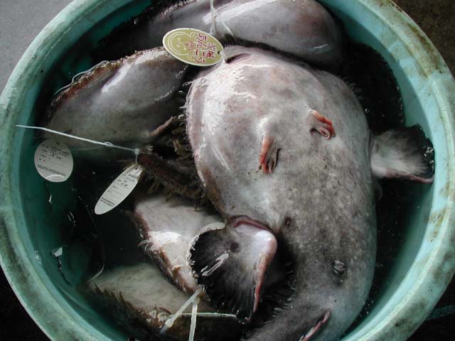 いろいろな魚が水揚げされているうち、2kg以上あるあんこうを「茨城あんこう」のタグをつけて、ブランド化しています。