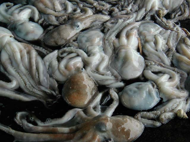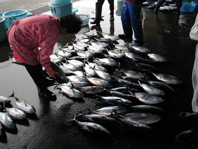 底引き船が5時頃帰ってくると、いろいろな魚が水揚げされておもしろい。