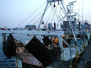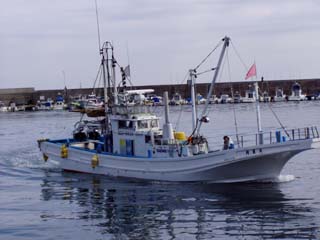 常磐沖で操業を終えた底引き船は夕方久慈漁港に帰港します。