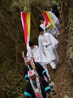 西金砂神社から険しい山を越え、天下野まで下る大行列